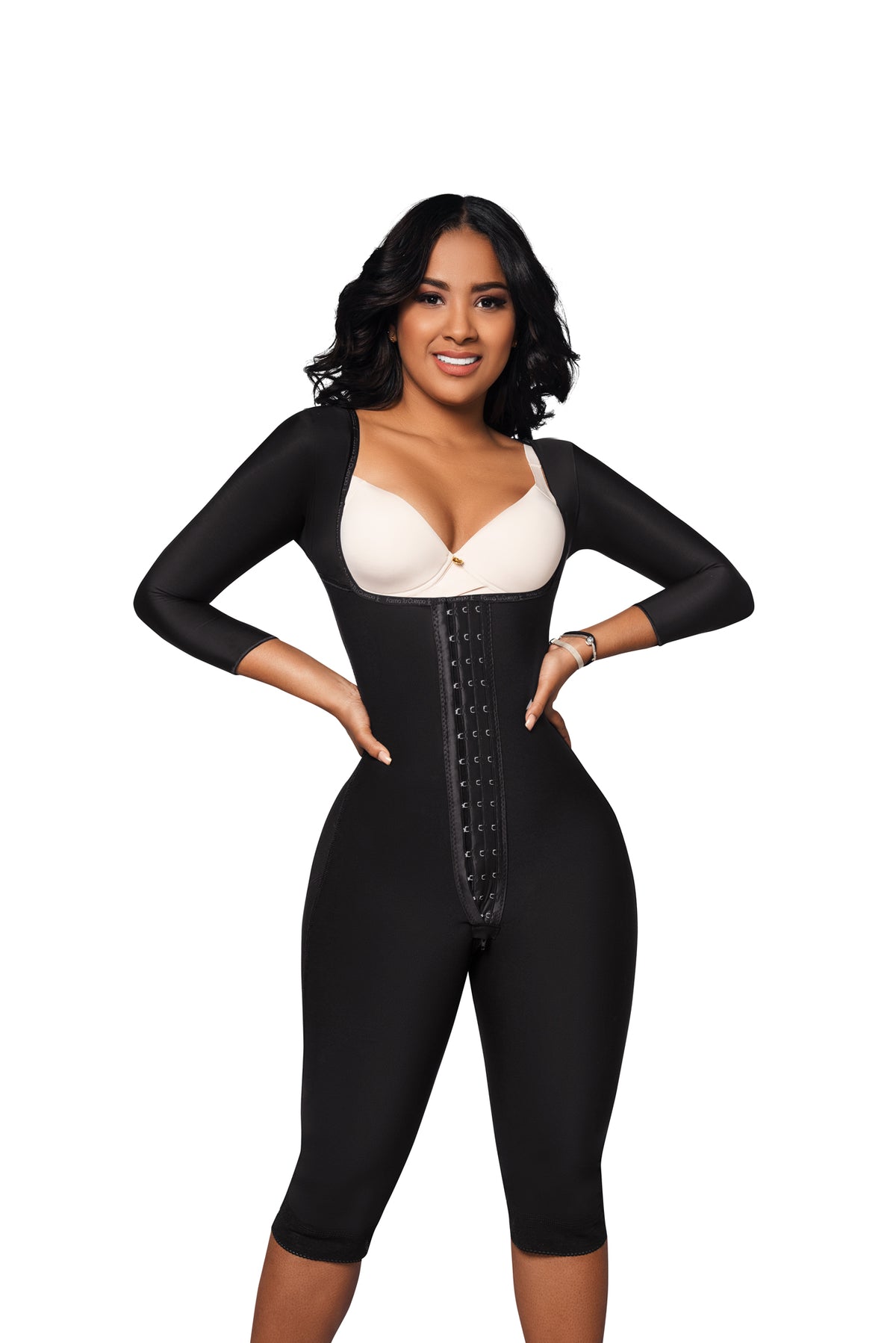 Faja completa reloj de arena - manga larga hasta la rodilla con cremallera perineal y broche central. Faja Colombiana Full Body 360 – Moldeo total y soporte completo ( Ref. O-025 / O-225 )